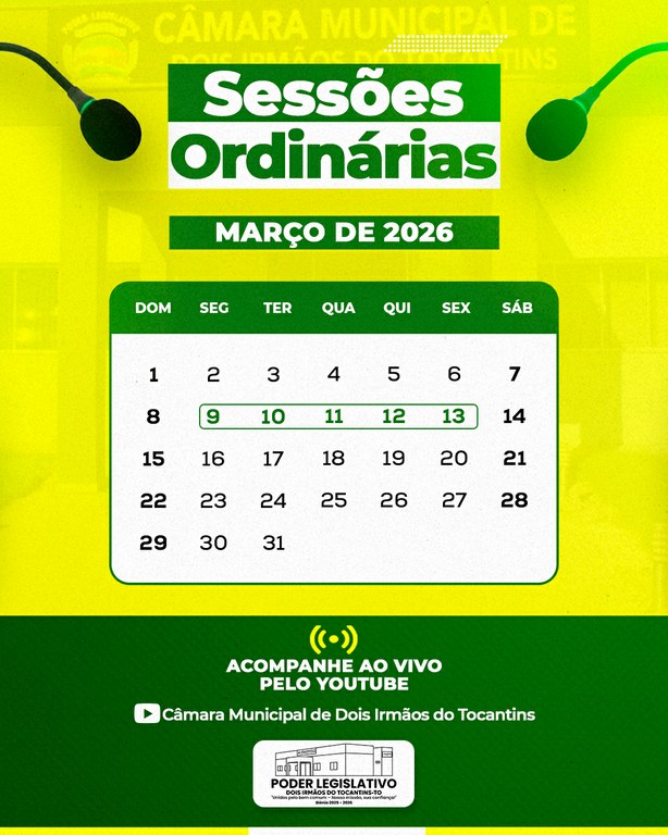 Câmara de Dois Irmãos do Tocantins Convoca Comunidade para Sessões Ordinárias de Outubro