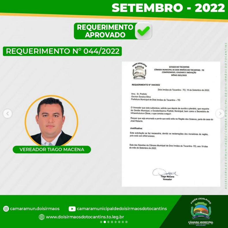 Poder Legislativo de Dois Irmãos – Estado do Tocantins