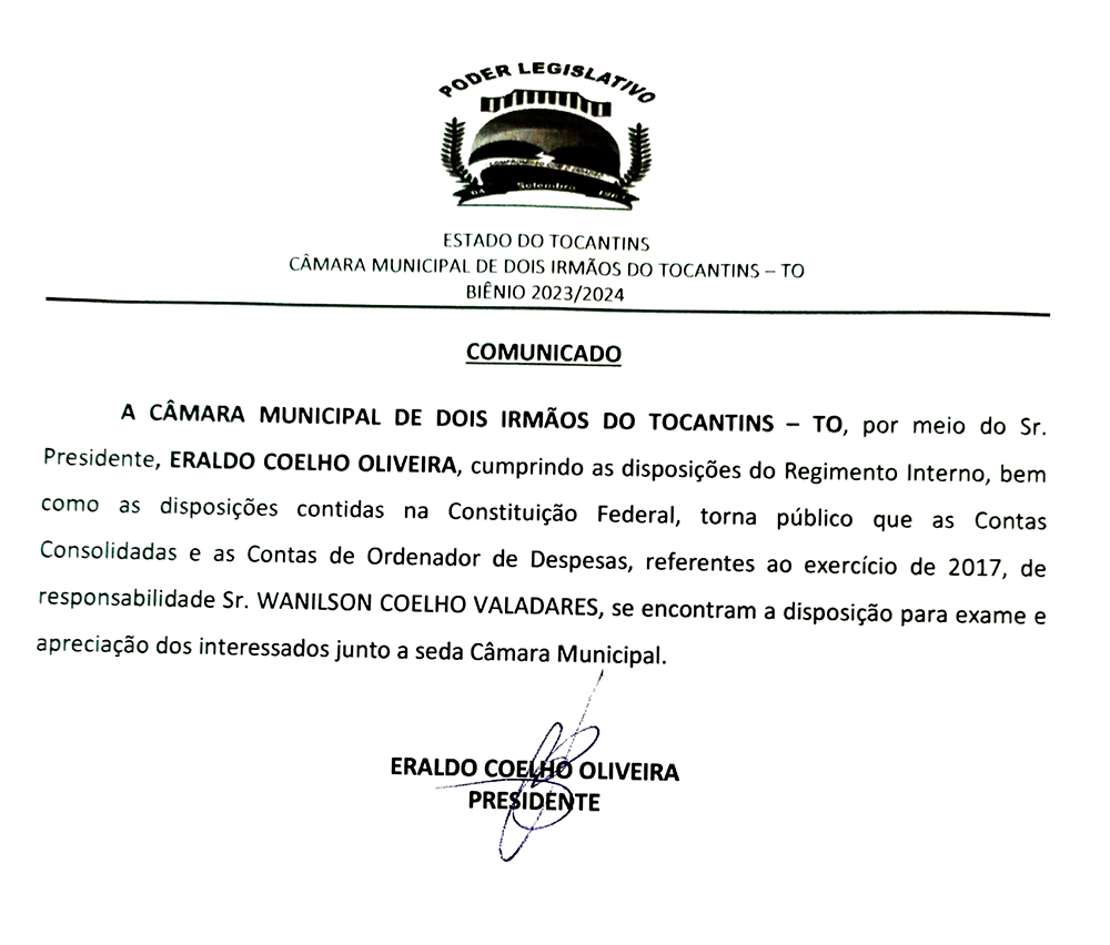 Poder Legislativo de Dois Irmãos – Estado do Tocantins