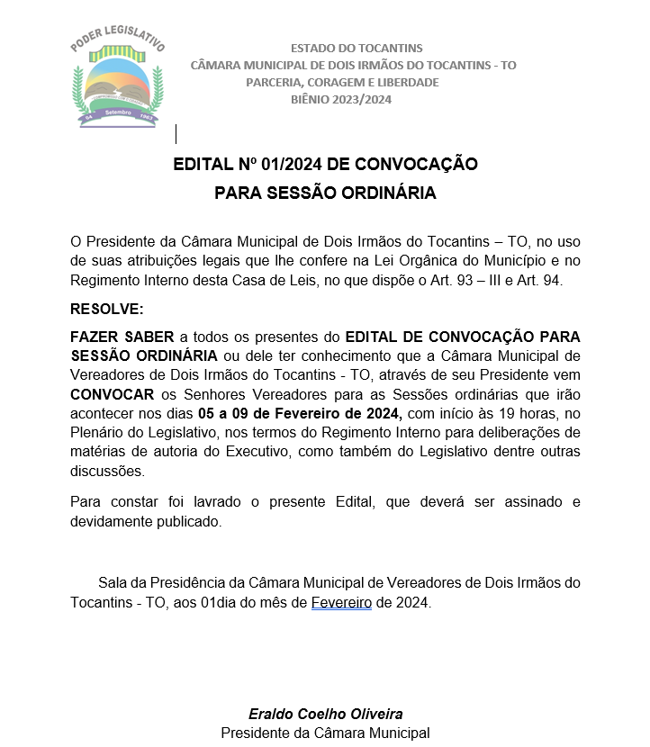 Poder Legislativo de Dois Irmãos – Estado do Tocantins