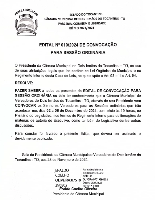 Poder Legislativo de Dois Irmãos – Estado do Tocantins