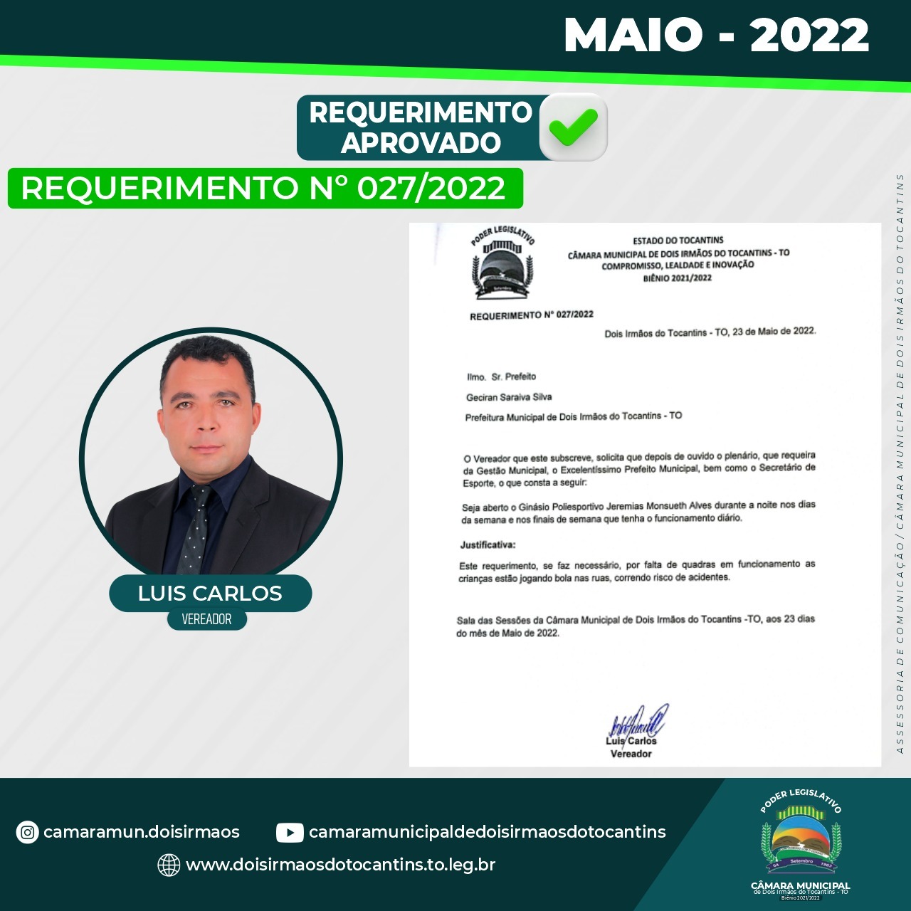 Poder Legislativo de Dois Irmãos – Estado do Tocantins